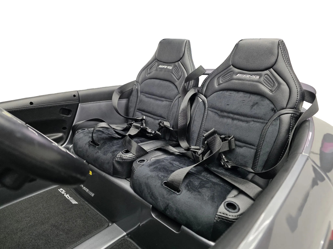 Diese Kinderauto unter der Lizenz von Mercedes-Benz ist mit vielen Optionen ausgestattet, darunter: vier 24 V Motoren, echte Türen, Ledersitz, Sicherheitsgurt, Gummibereifung, MP4-Display (4,7 ") sowie eine 2,4-GHz-Fernbedienung. Das Kinderfahrzeug kann entweder vom Kind allein oder mit der Fernbedienung von den Eltern gesteuert werden. Mit der Funktion „Sanftanlauf“ beschleunigt dieses Kinderauto sanft und erhöht die Geschwindigkeit Schritt für Schritt ohne Stöße. Die Geschwindigkeit ist einstellbar zwischen 3 und 8 km/h.